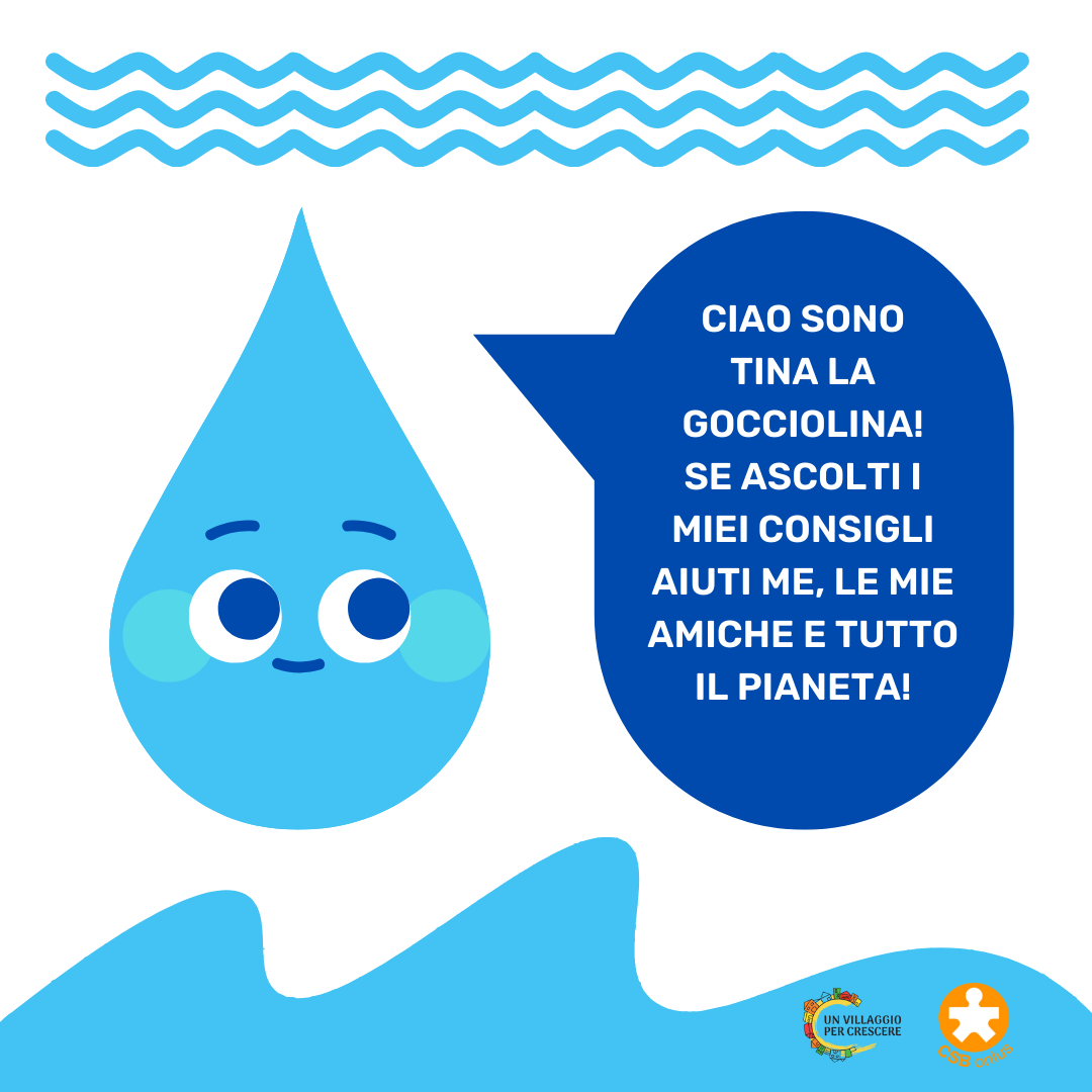 Così, soprattutto per affrontare questo periodo delicato per il nostro pianeta e contribuire tutti, piccoli e grandi, abbiamo deciso di chiedere aiuto alla nostra mascotte, Tina la gocciolina, per farci spiegare quali gesti quotidiani possiamo fare per non sprecare l’acqua.