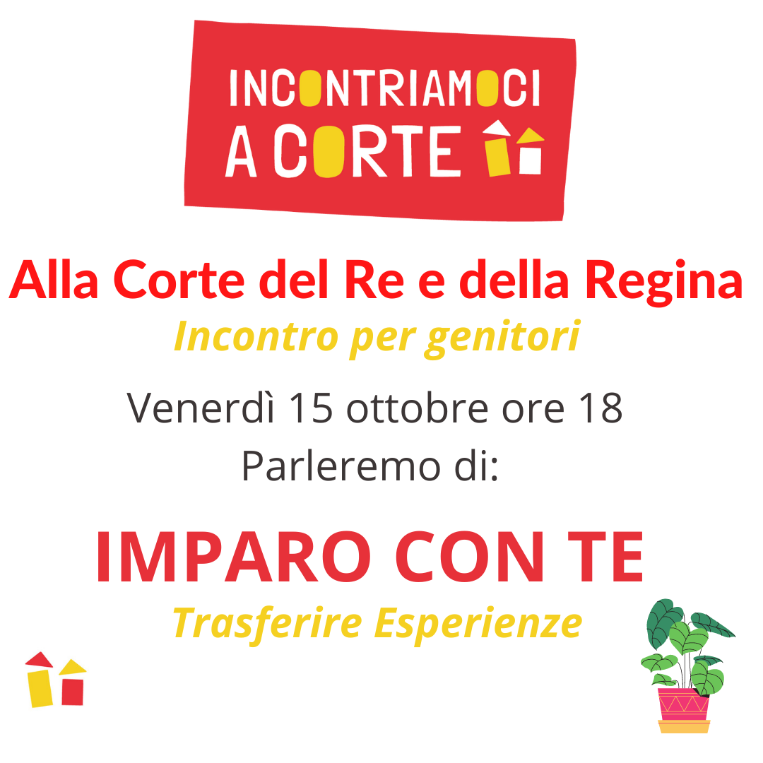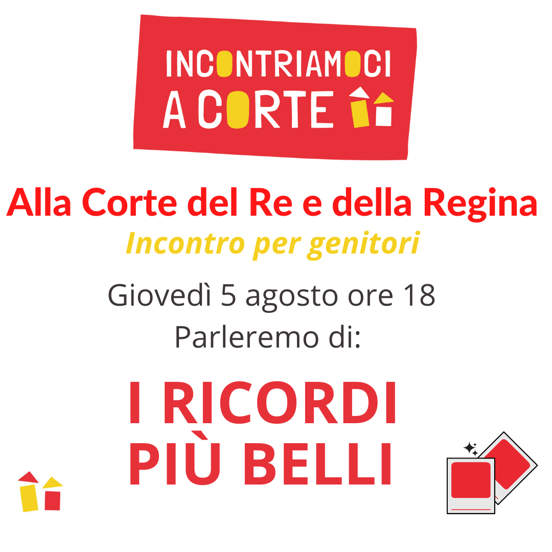 Dal mese di luglio inizierà per mamme, papà, nonni e adulti di Incontriamoci a Corte il ciclo di incontri “Alla Corte del Re e della Regina” – cinque momenti di condivisione confronto, con l’obiettivo di sostenere la genitorialità all’interno del complesso di Stadera.