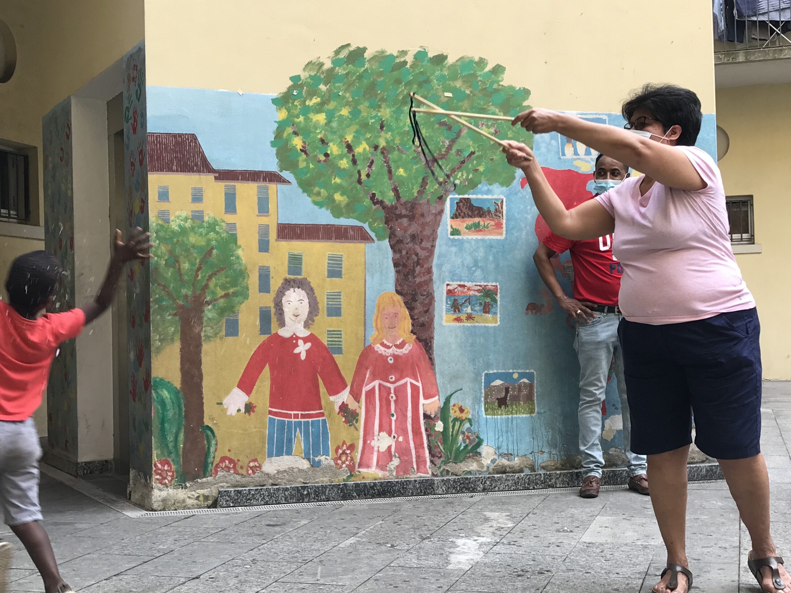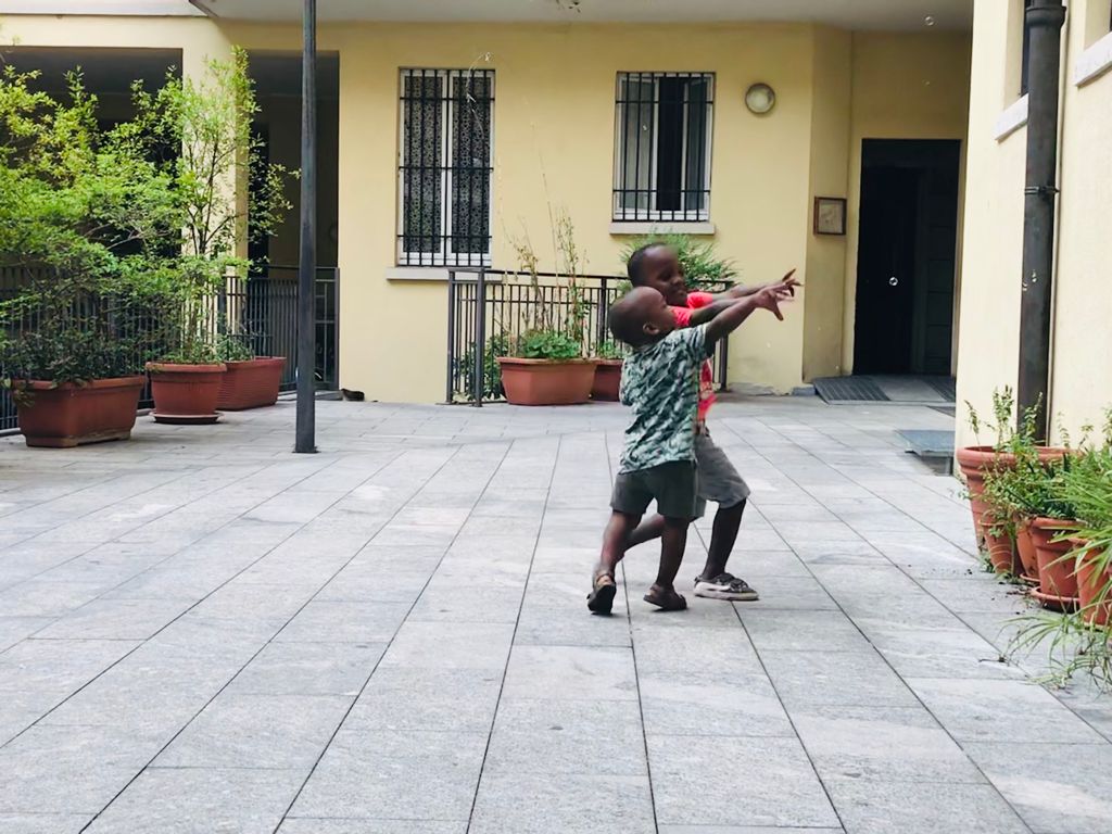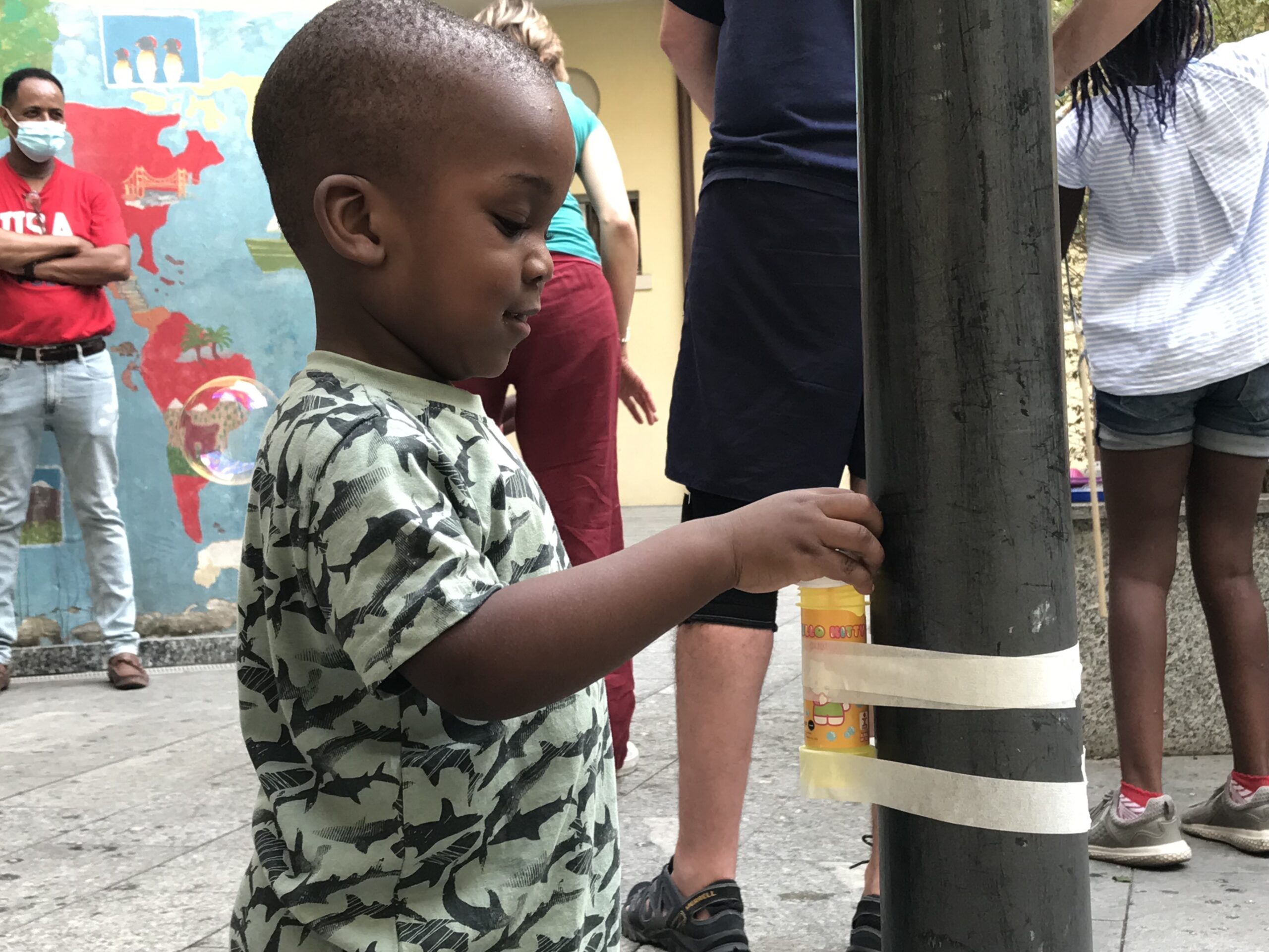 Dopo che Licia ha mostrato come fare, le bambine e i bambini, e anche i genitori e nonni hanno provato a stare insieme, leggeri come una bolla di sapone!